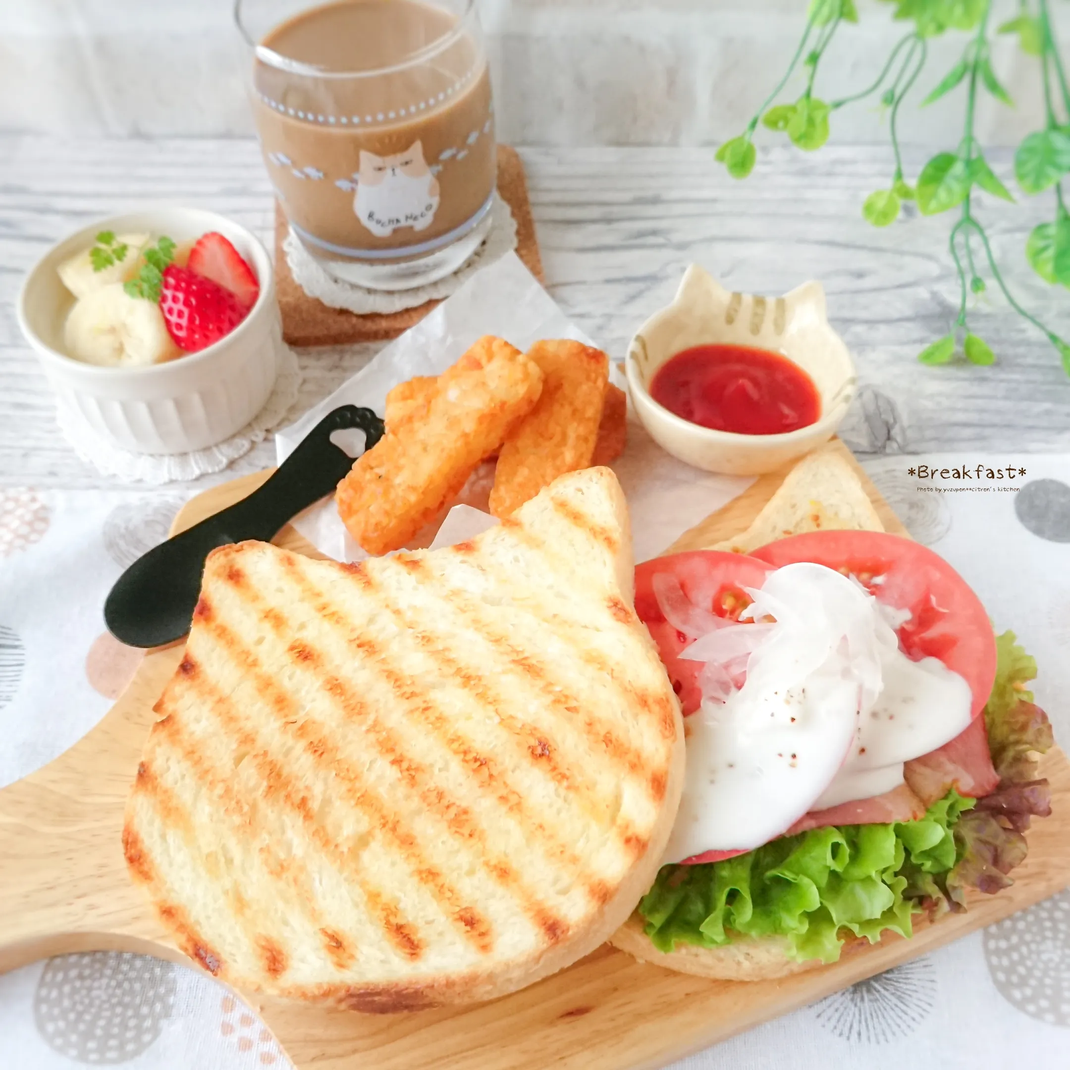 #ごはん #カフェ風ランチ #猫食パン #サンドイッチ #BLTサンドイッチ #猫まみれ #野菜たっぷり