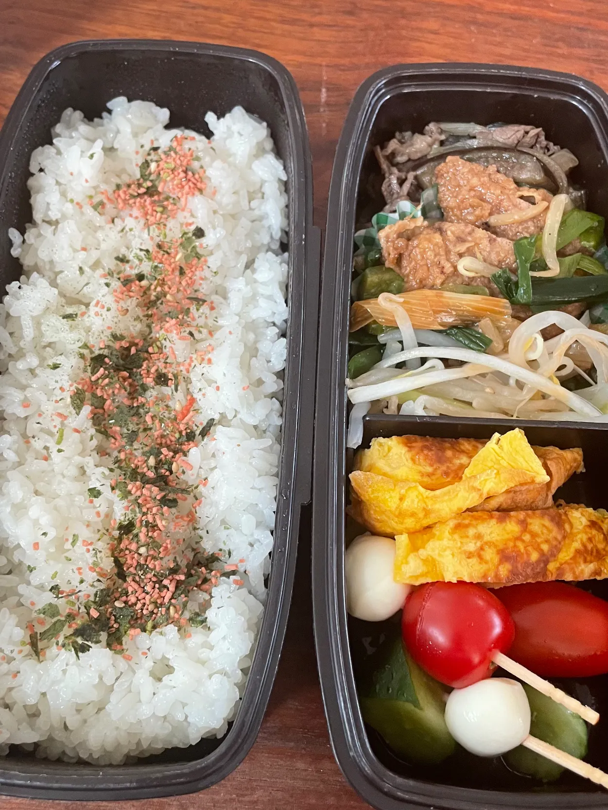 #料理係 #息子のために #オヤジ弁当 #お弁当 #手抜きも大事 #卵焼き #あまり物 #飲んだ翌朝つらい #鮭 #豚しゃぶ