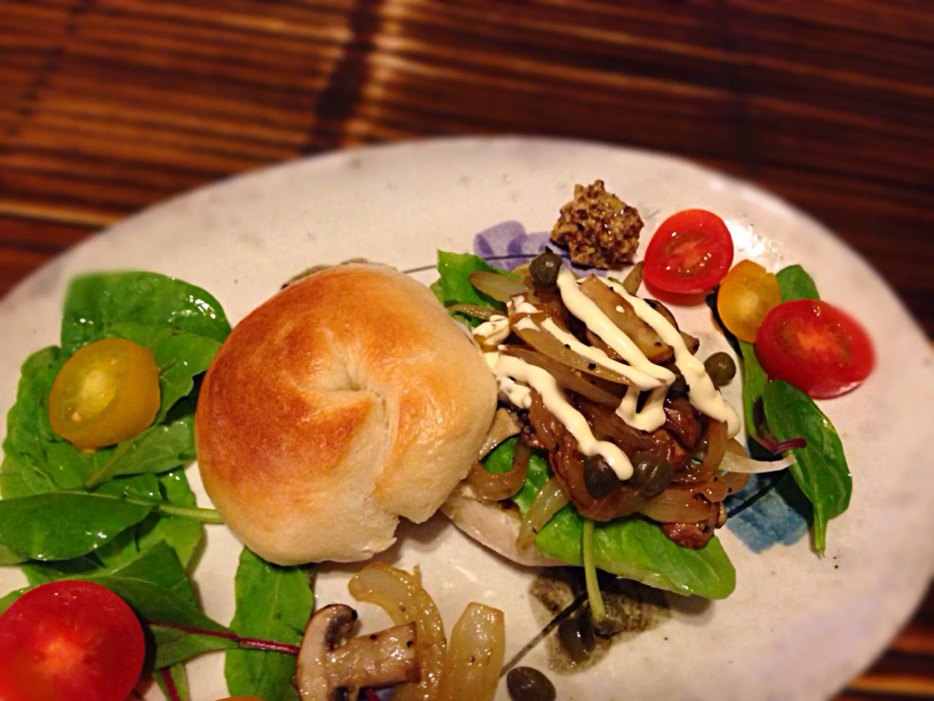 想定より小さくて、具が挟みきれなかったよ。だから、まわりに飾ったよ( •́ .̫ •̀ )