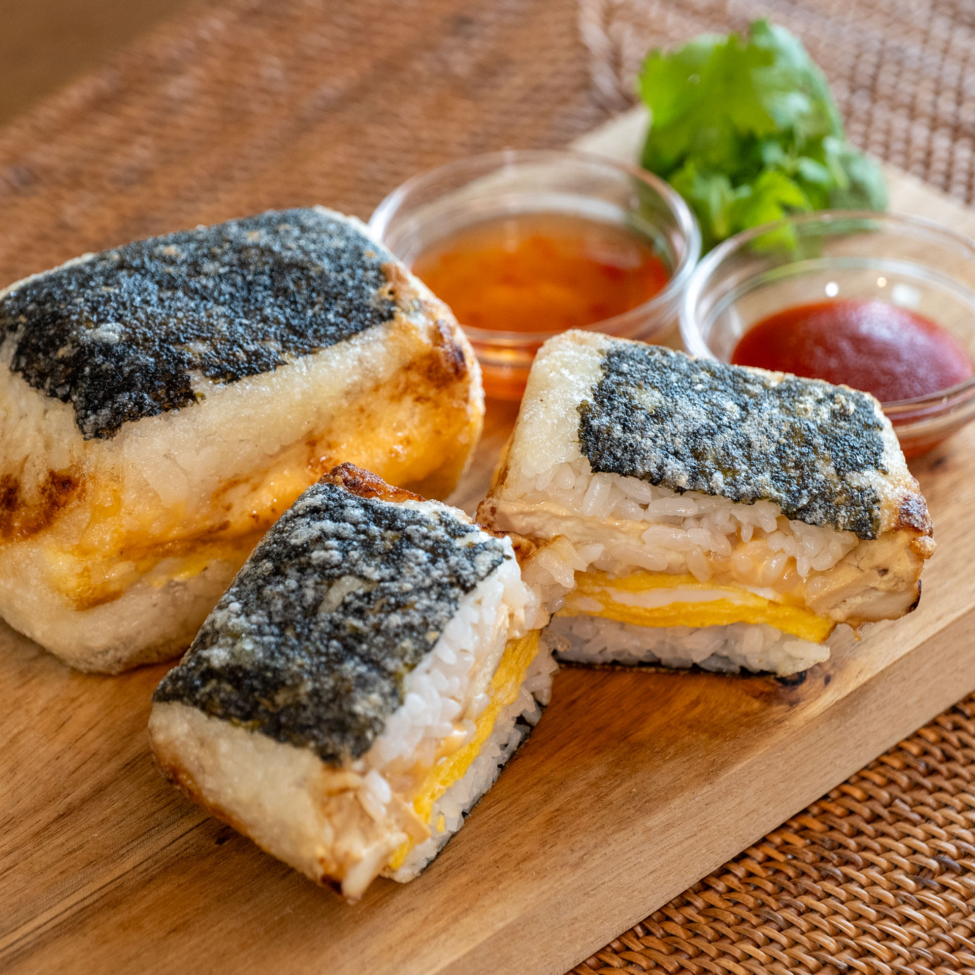 そのままでも美味しいですが、シラチャ―(レッド)を豆腐スパムに塗ったり、できあがったスパムむすびに、スイートチリソースをディップして食べるのもおすすめです!