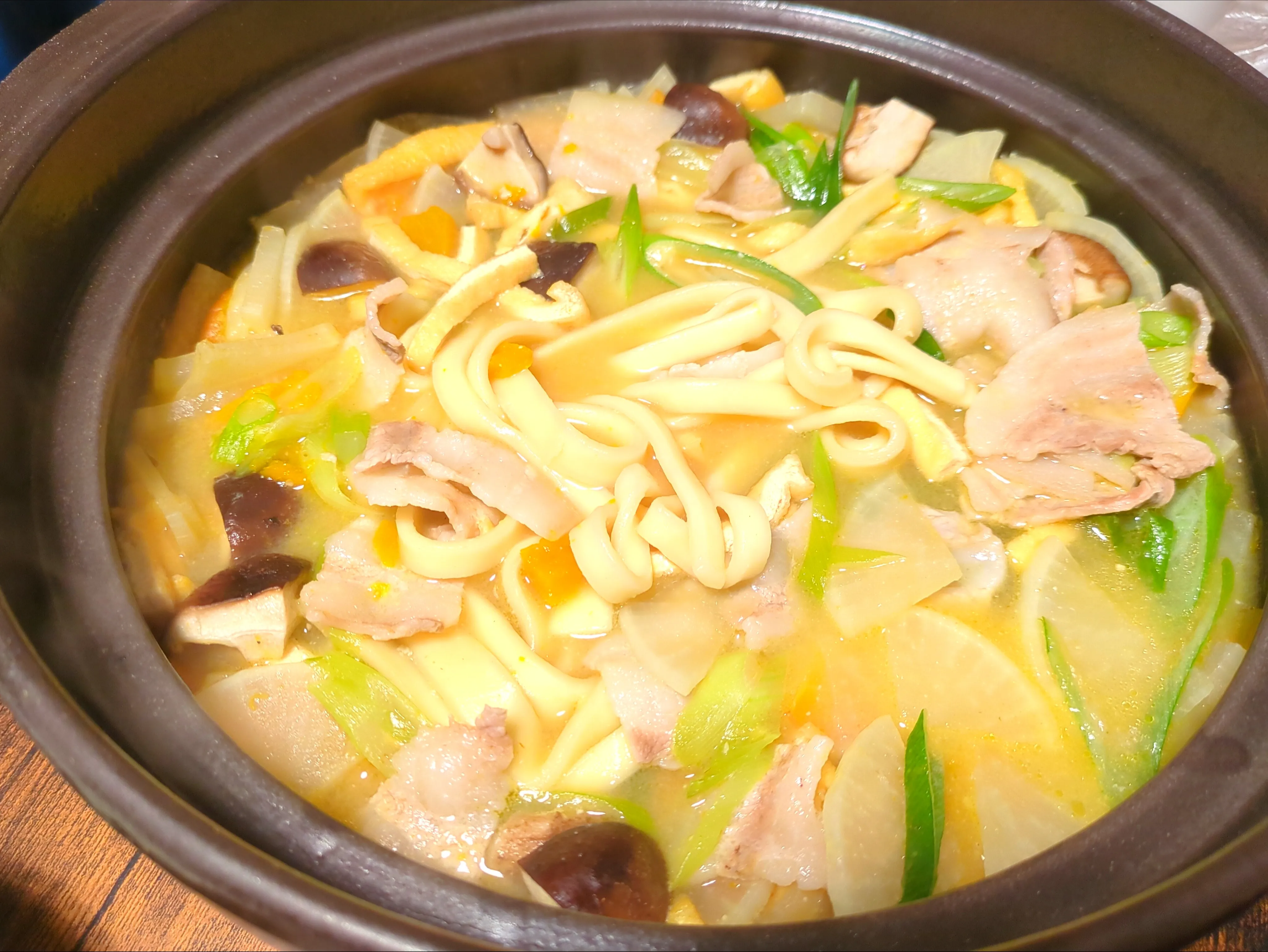 山梨に来る機会があったのでスーパーで買ったほうとう麺を使って具だくさんほうとうを作ってみました!心も体もあったまります