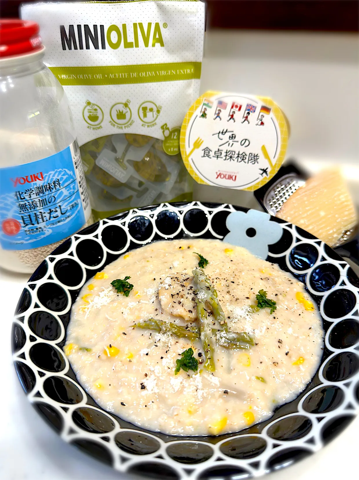 リゾットなので、基本的にお米🍚ですが、私はいつも朝食で食べてるオートミールを代用して作りました✌️