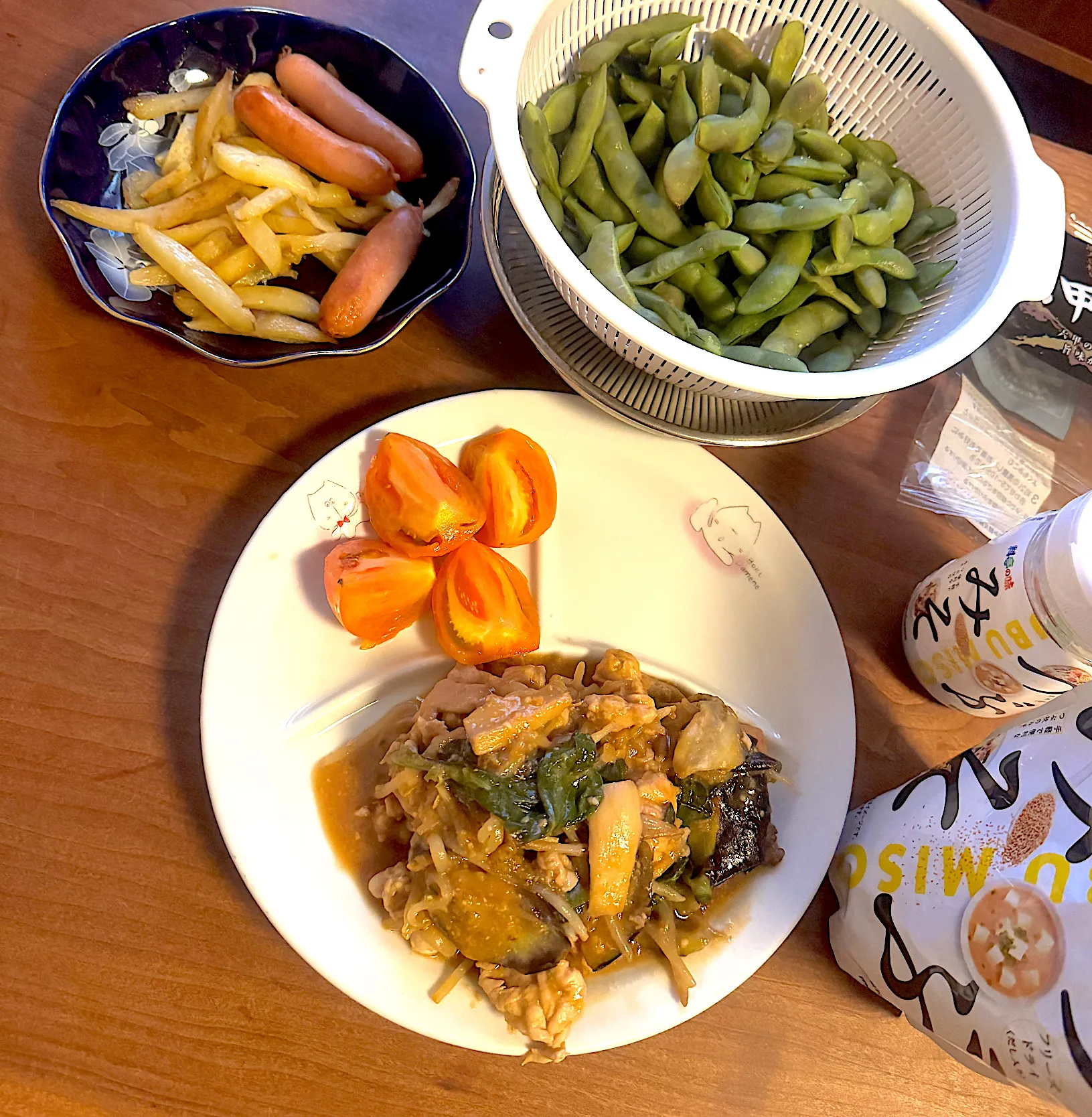 (つぶみそ、豚肉、ナス、エリンギ、小松菜、もやし)