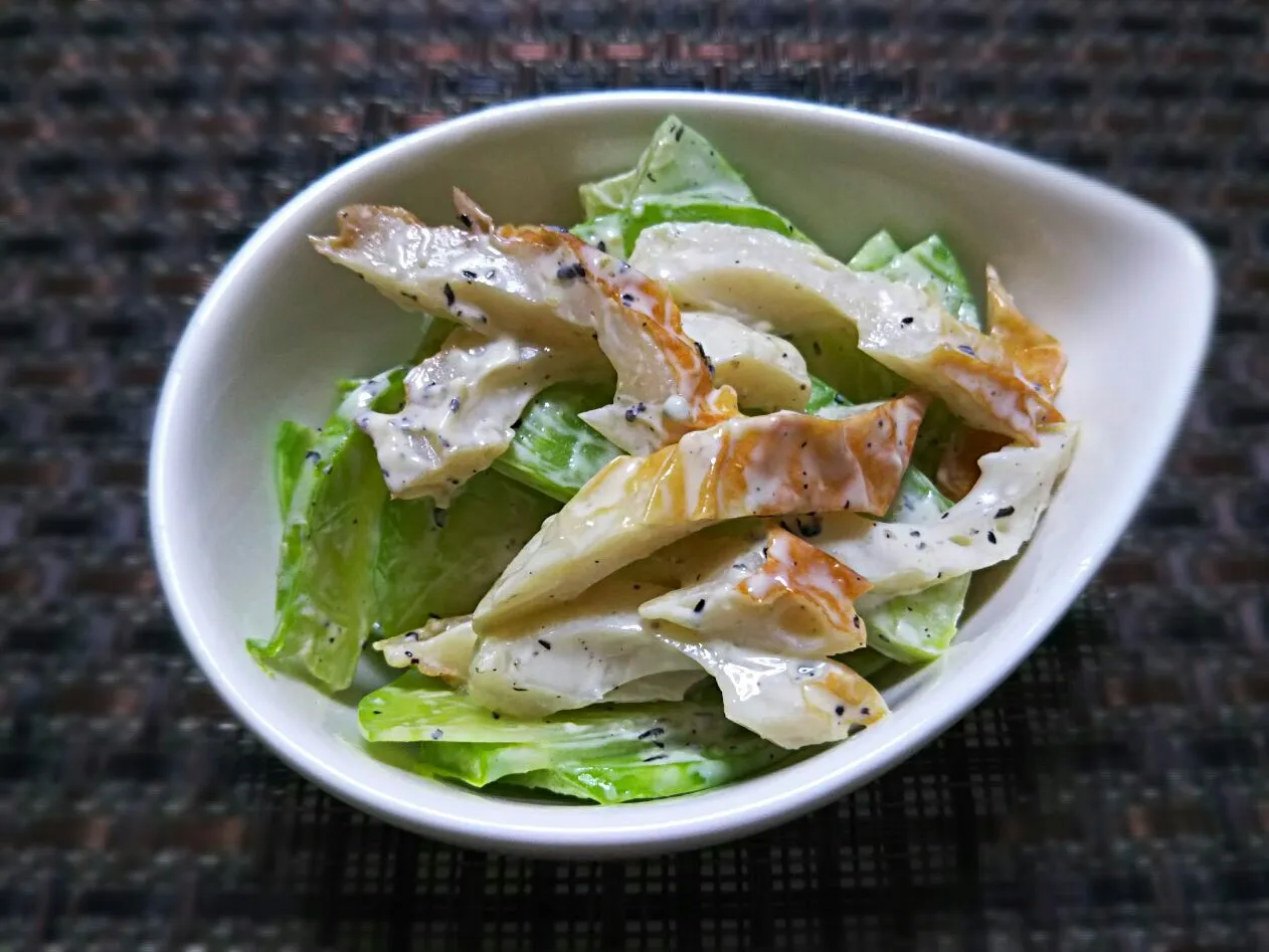 ブロッコリーの芯と竹輪のマヨ胡麻サラダ