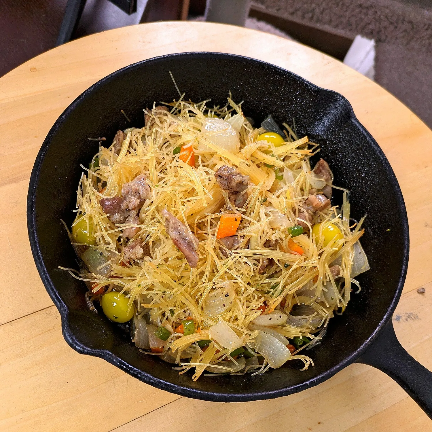 #フィデウア #カッペリーニ #にんにく #玉葱 #人参 #いんげん #銀杏 #豚タン元 #水 #MCスパイス21 #ユウキ食品 #マコーミック #スキレット #オーブン調理 #麺料理 #スペイン料理 #オリーブオイル #麺のパエリア