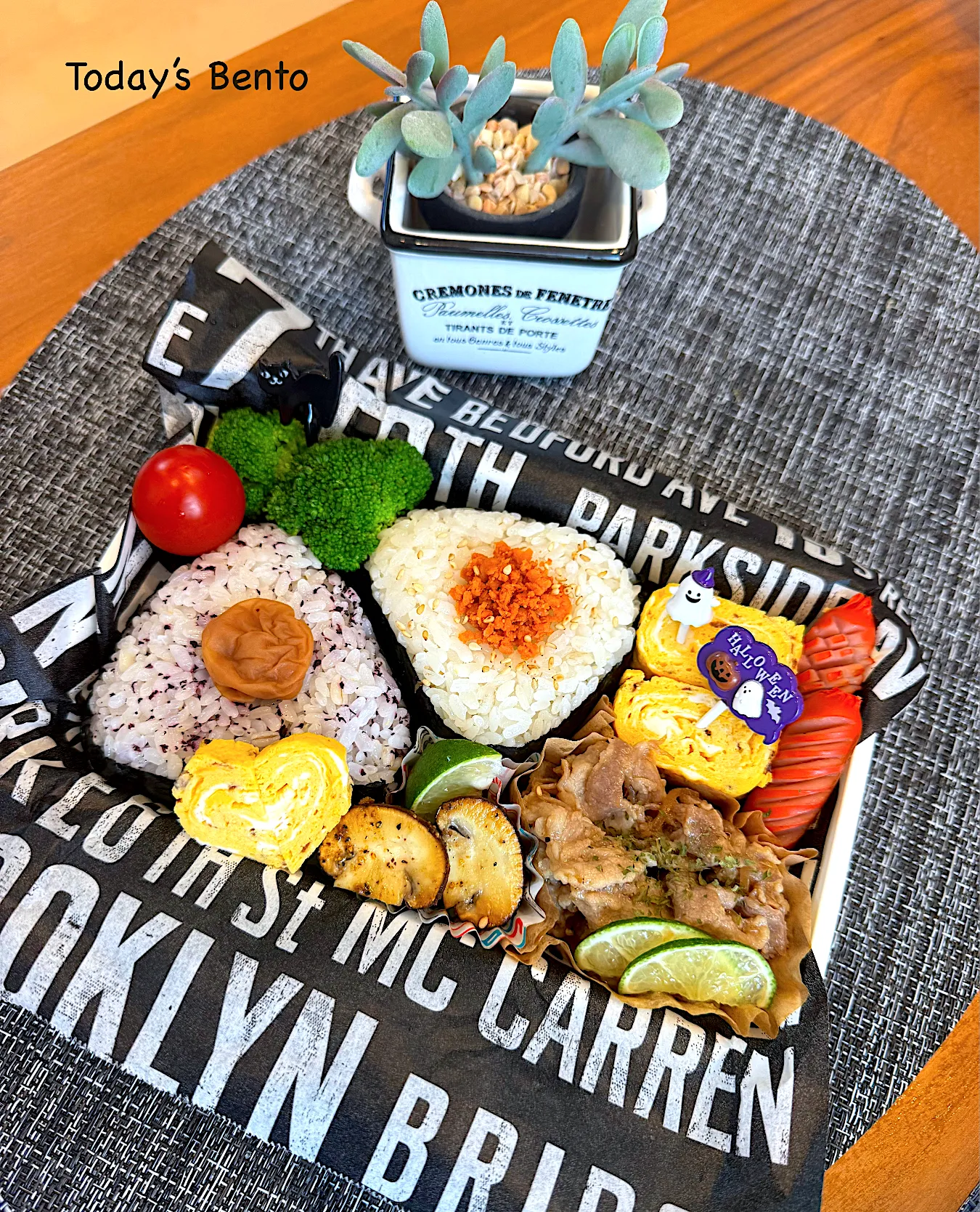 おにぎりちょっと大きく作りすぎて、予定していたお弁当箱に入らなくて焦ったよ😅