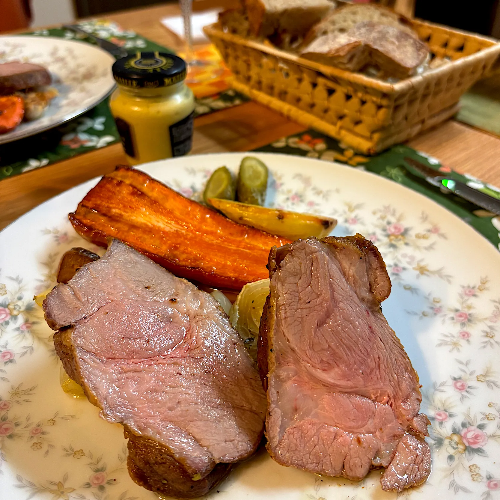 にんじん、ニンニク、玉ねぎ、ジャガもいい具合に焼けました。合いの手にちょいピクルスがなかなか相性良くて新発見です。