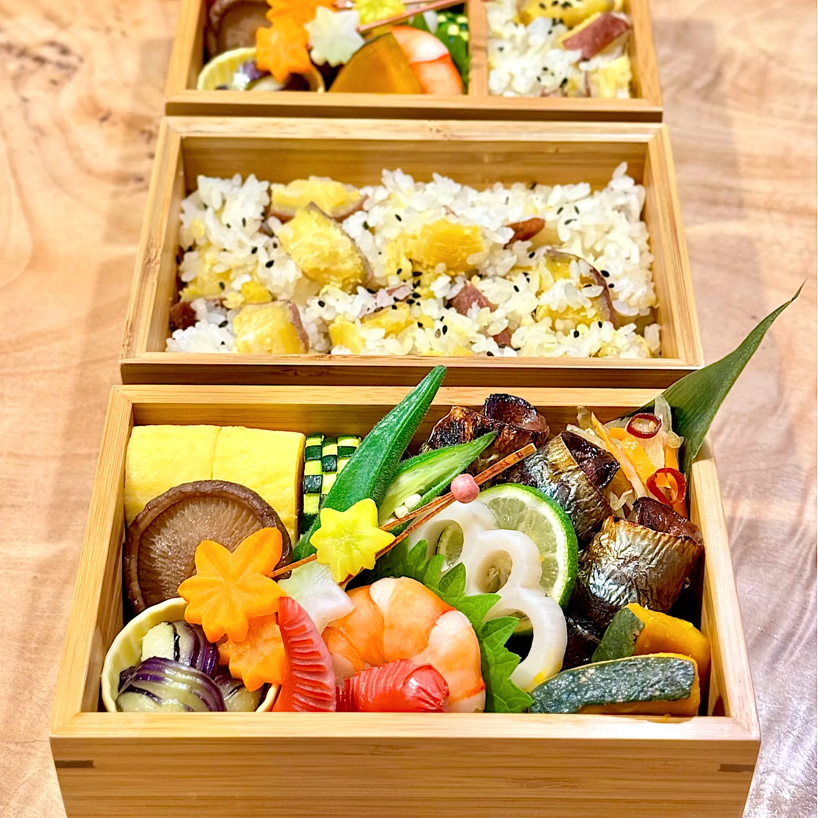 今日は秋刀魚の幽庵焼きをメインに薩摩芋ご飯を。