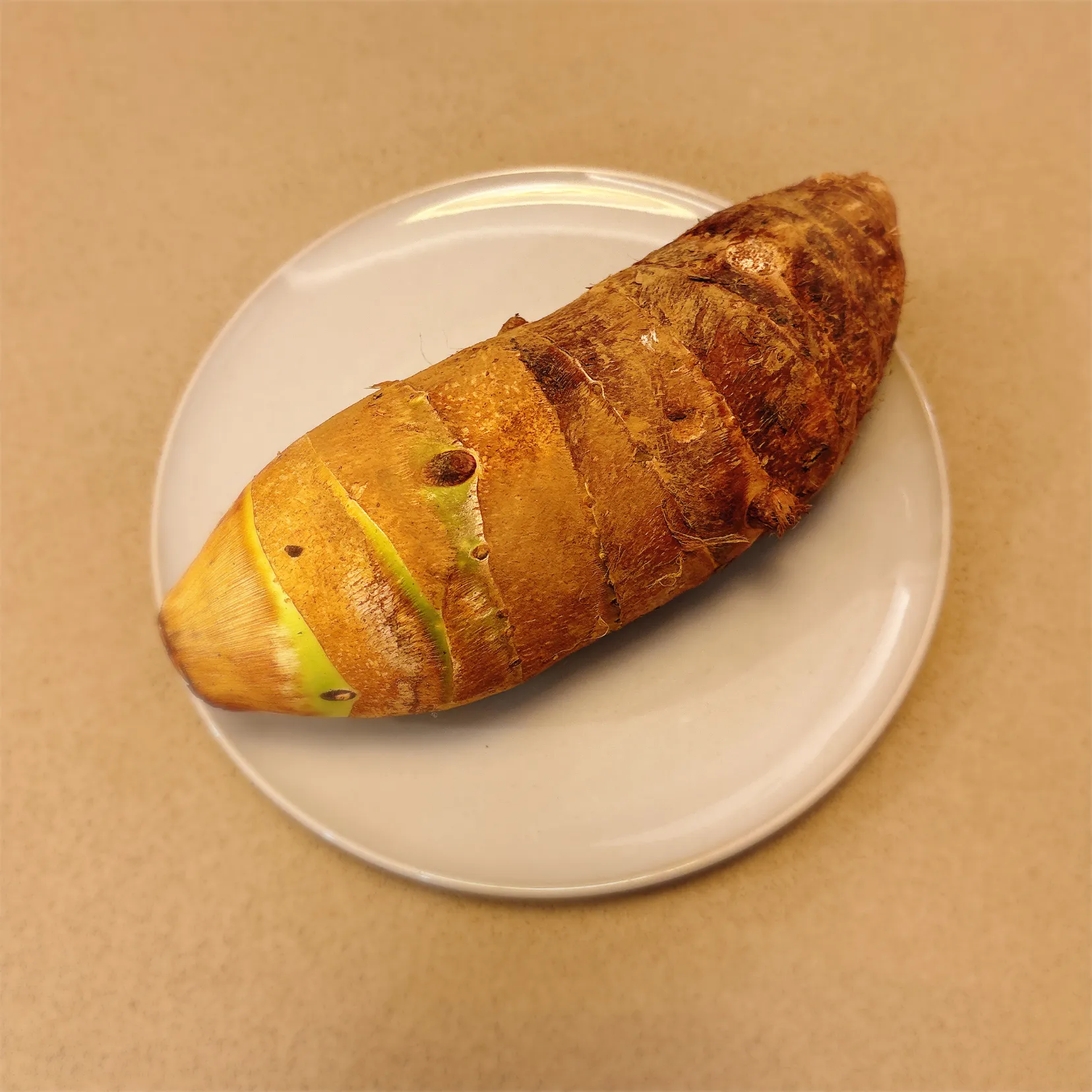 京芋という名前から、京都で作られている芋なのかと思いますが、こちらは、宮崎県産の珍しい里芋の一種です。 日本では里芋は縄文時代から食べられていたといわれる、歴史のある芋です。さつまいもやジャガイモよりも、もっと以前から、日本ではなじみの食材なのです。そんな里芋は、食べられる地方によっても、さまざまな形や呼び名があります。京芋は里芋の様なころころとした丸い形ではなく、里芋の親芋が長く成長して、地上まで顔を出します。大きなものでは60cmにもなり、その形状からタケノコイモとも呼ばれています。 一般的な里芋と違い、ちょっと変わった形をしていますが、基本的な下ごしらえなどは里芋と同じです。さらに皮がむきやすく、きめの細かいしっかりとした肉質が特徴で、煮崩れしにくいので調理のしやすい食材です。