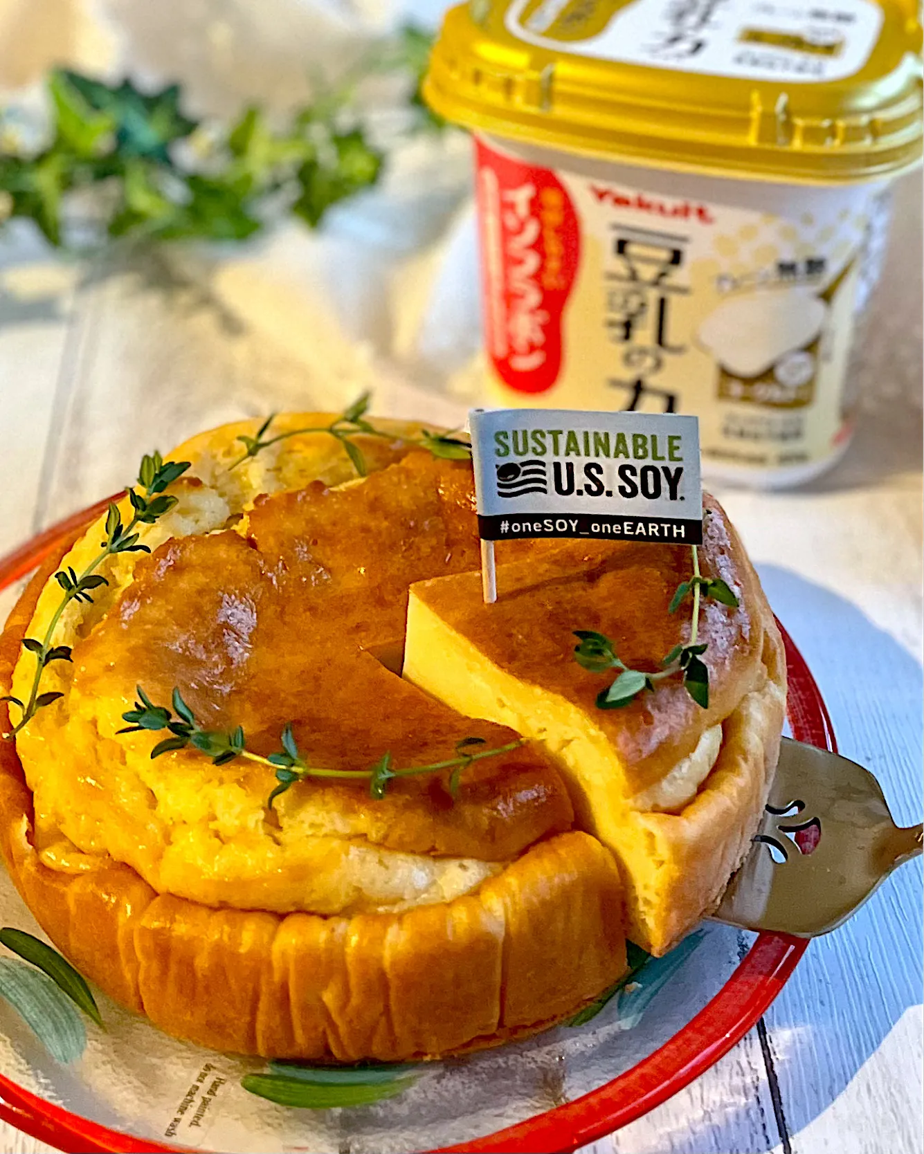 アメリカ産サステナビリティ認証大豆を使用した豆乳ヨーグルトとその他の材料を混ぜて焼くだけ☝️