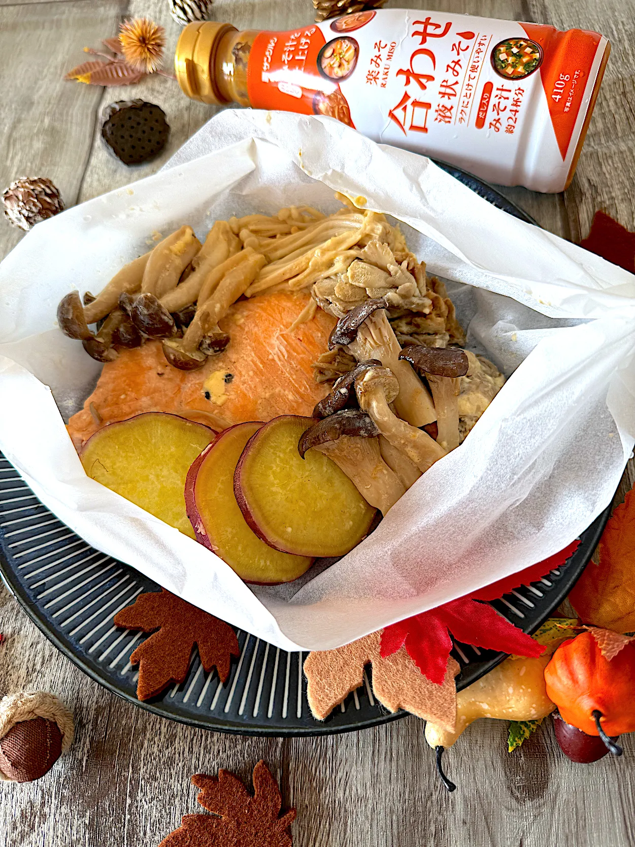 秋の🍂イメージの鮭、きのこ、さつまいも🍠がマヨネーズ&楽みそソースで凄く美味しかったよ〜😋