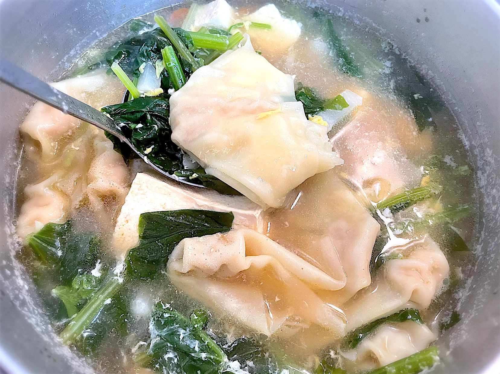 ほうれん草、大根、卵、豆腐。にんじん、ネギ、生姜いり。