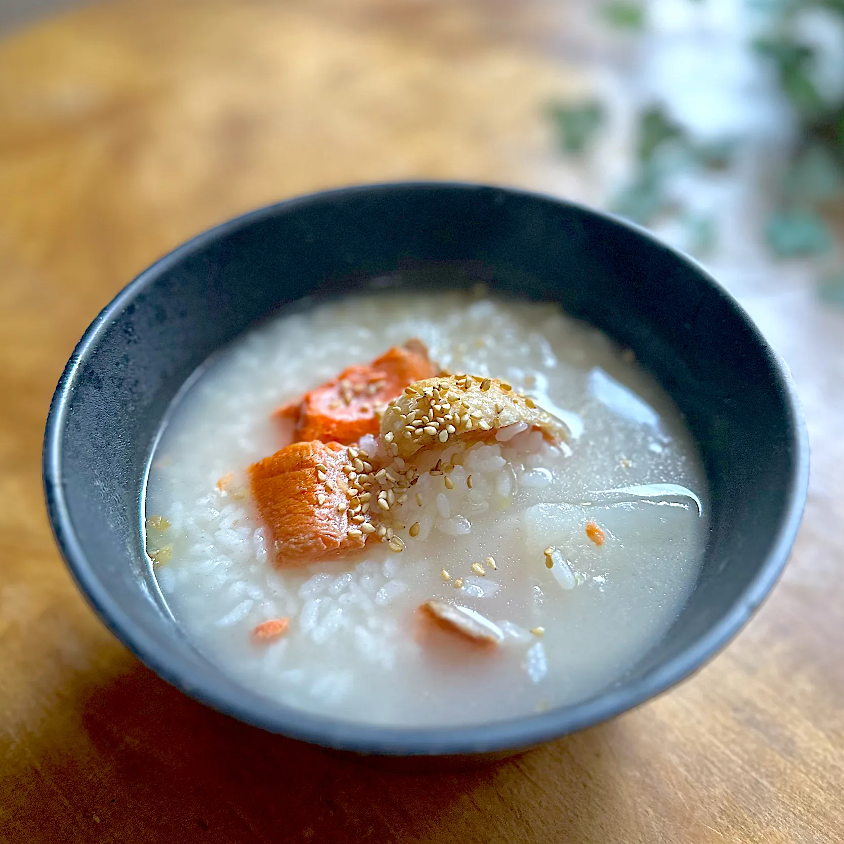 鮭と大根の雑炊です。大根は圧力鍋で茹でてから入れたので厚切りでも問題なしの雑炊ですが、生の薄切りの方が美味しい気がします。鮭は焼いてから入れましたが、これはこちらの方が香ばしくていい気がします。生姜がきいて、白だしが優しく。ホッとする味です。胡麻をたくさんふりかけて。
