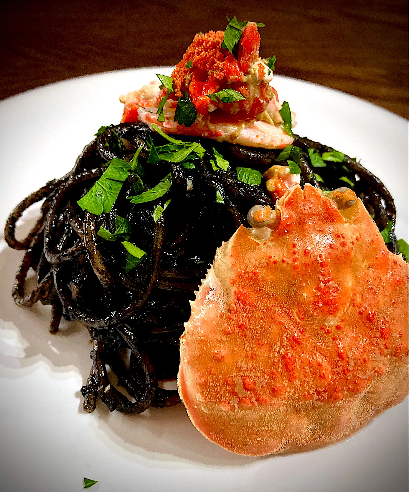 イカ墨パスタといったら、イタリア🇮🇹のヴェネツィアでよく食べられるパスタ。イカ墨のアミノ酸と蟹の甘みと磯の香りが合わさると味に深みと奥行きが出て最高です。是非作って欲しい逸品です‼️🍝🦑🦀🇮🇹
