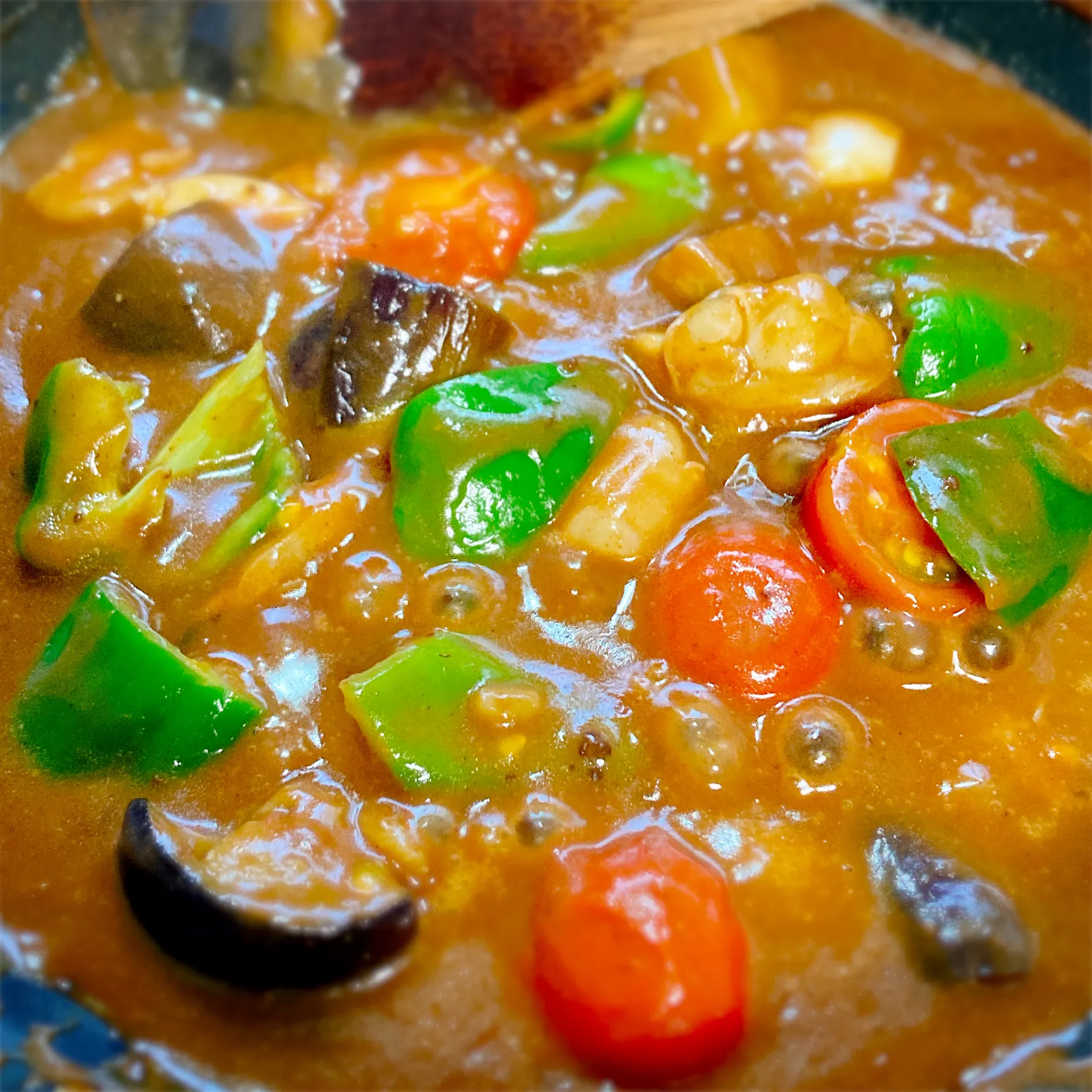 野菜は茄子、ピーマン、プチトマト。