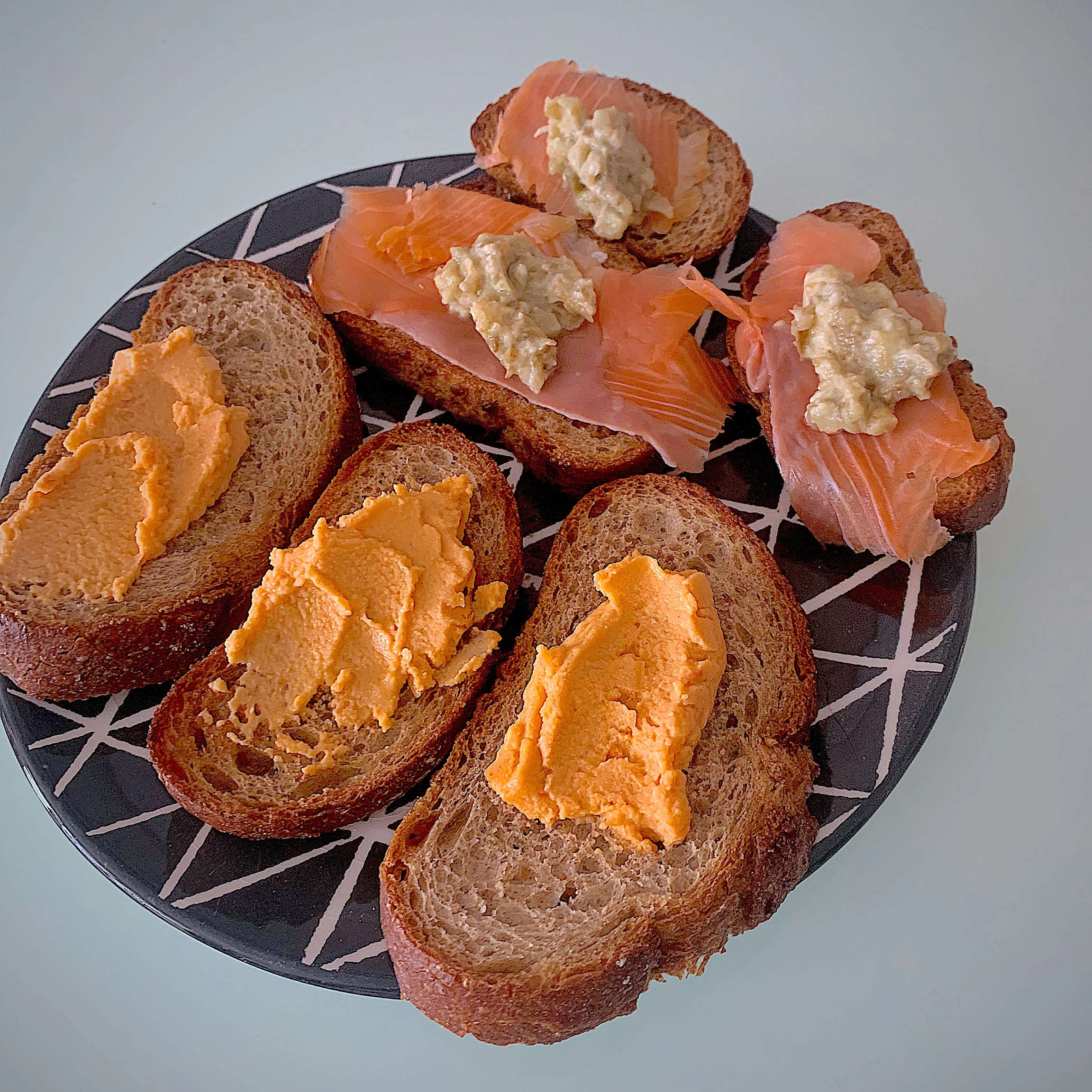 スモークサーモン&ババガヌシュ(茄子のソース)&フムスのオープンサンド