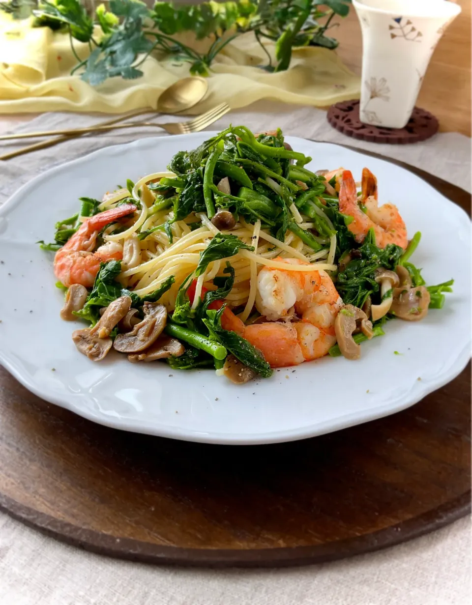めちゃくちゃ菜の花たっぷり〜なオイルパスタだね*・゚(≧︎∀︎≦︎)゚・*