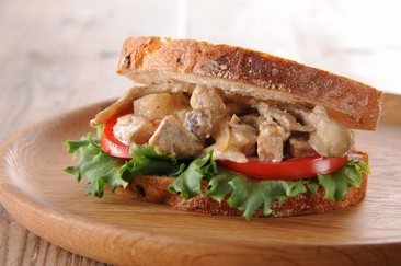 パンにバターを塗り、グリーンリーフ、トマト、③をのせ、パンを重ねて出来上がり。