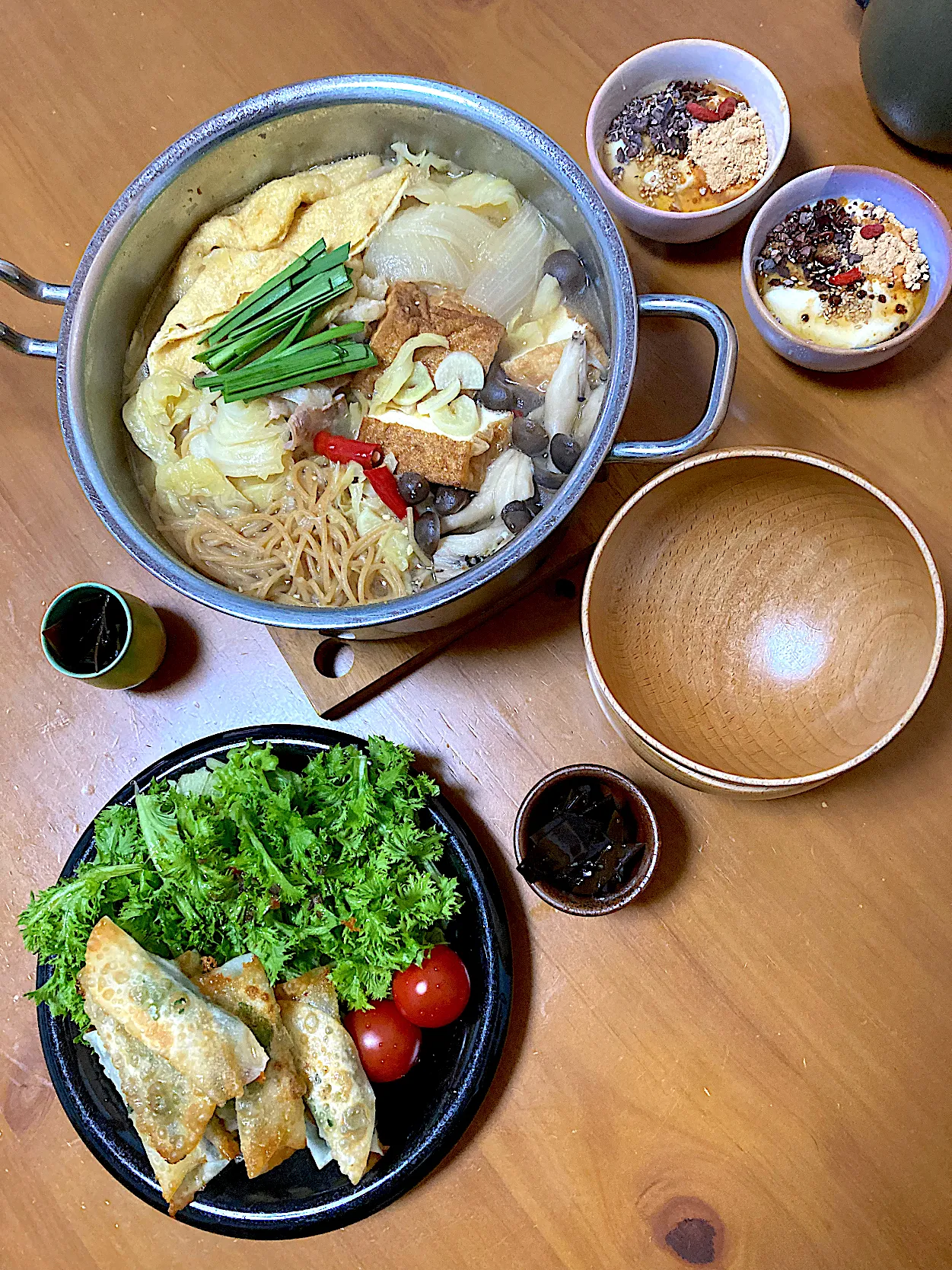 全粒粉パスタを重曹入れて茹でて中華麺風に。