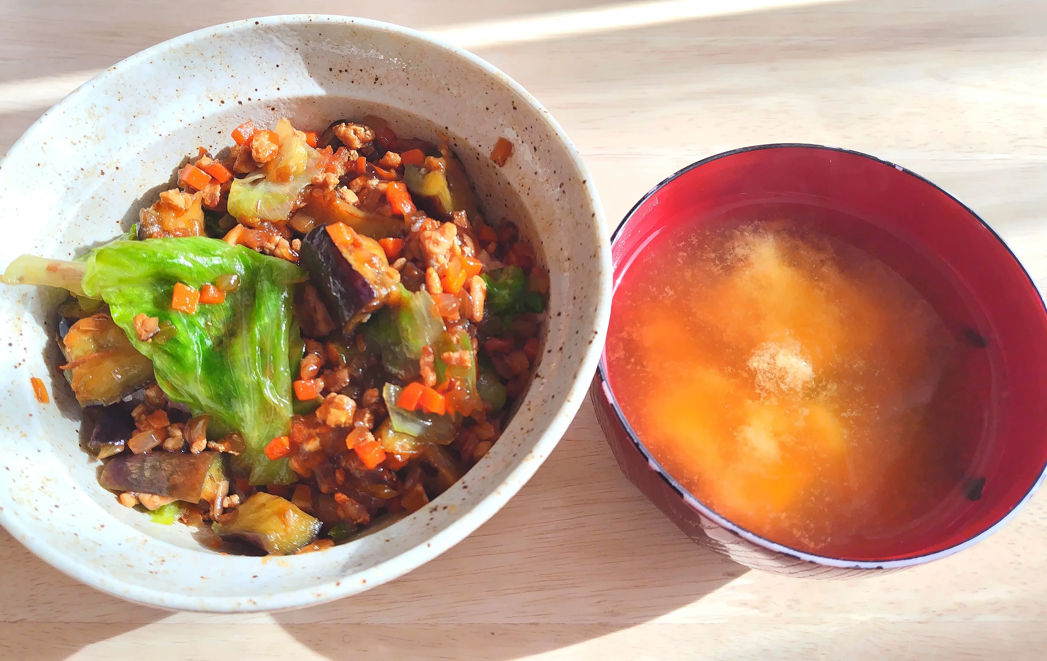 2025 1130 野菜たっぷりのっけ丼 豆腐とわかめのお味噌汁