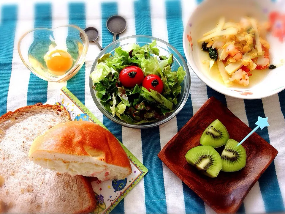 ランチ❤️手作りパンで… 〜たっぷりポテサラパン&ライ麦胡桃食パン〜