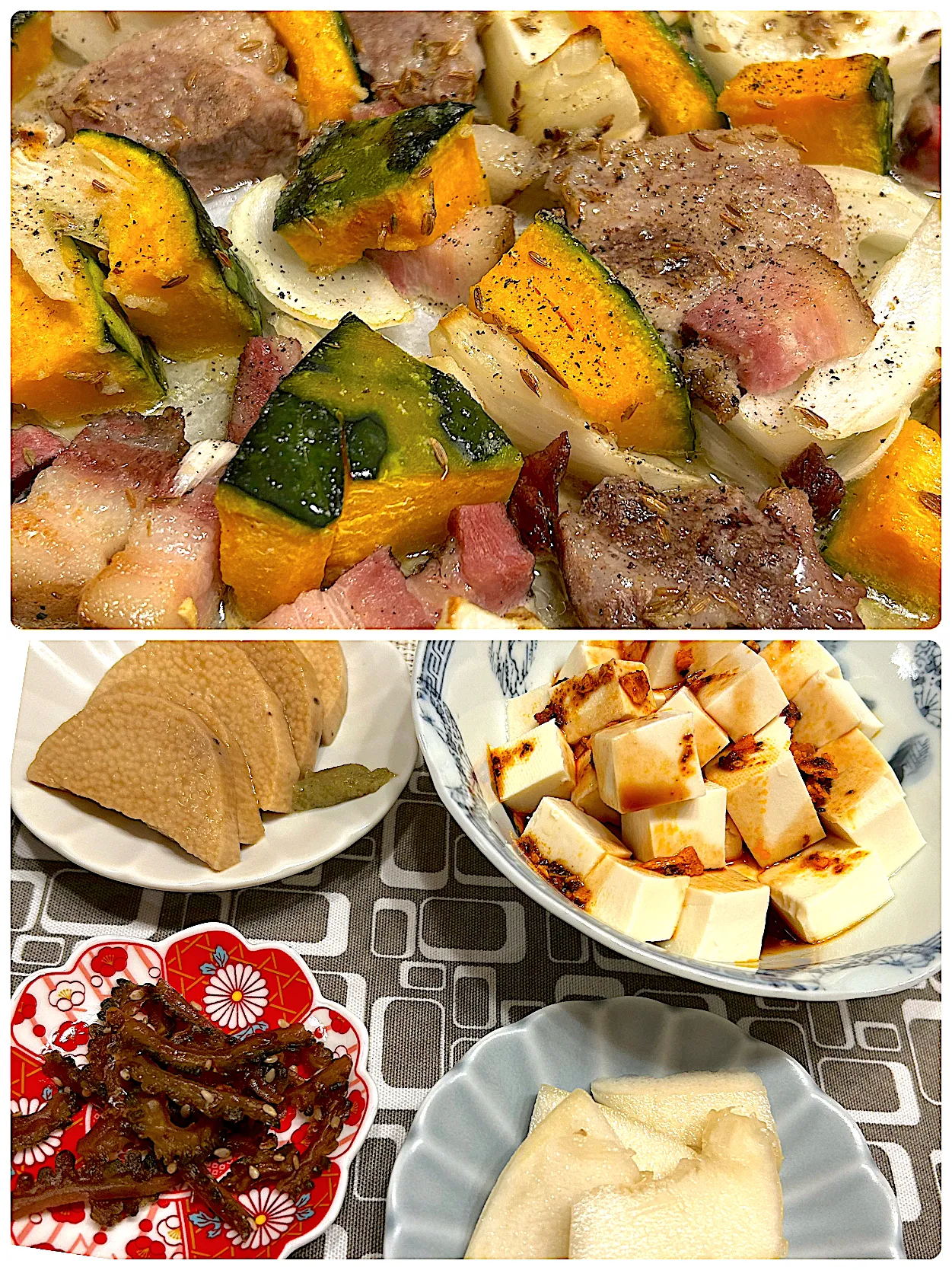 ゴロゴロかぼちゃと厚切りベーコンのクミンバター