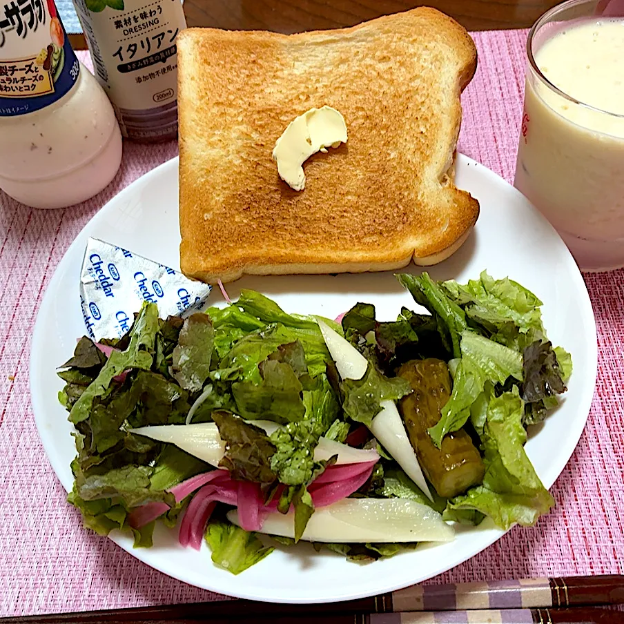 #朝ご飯 #サラダ #食パン #豆乳 #美酢活 #アイスコーヒー