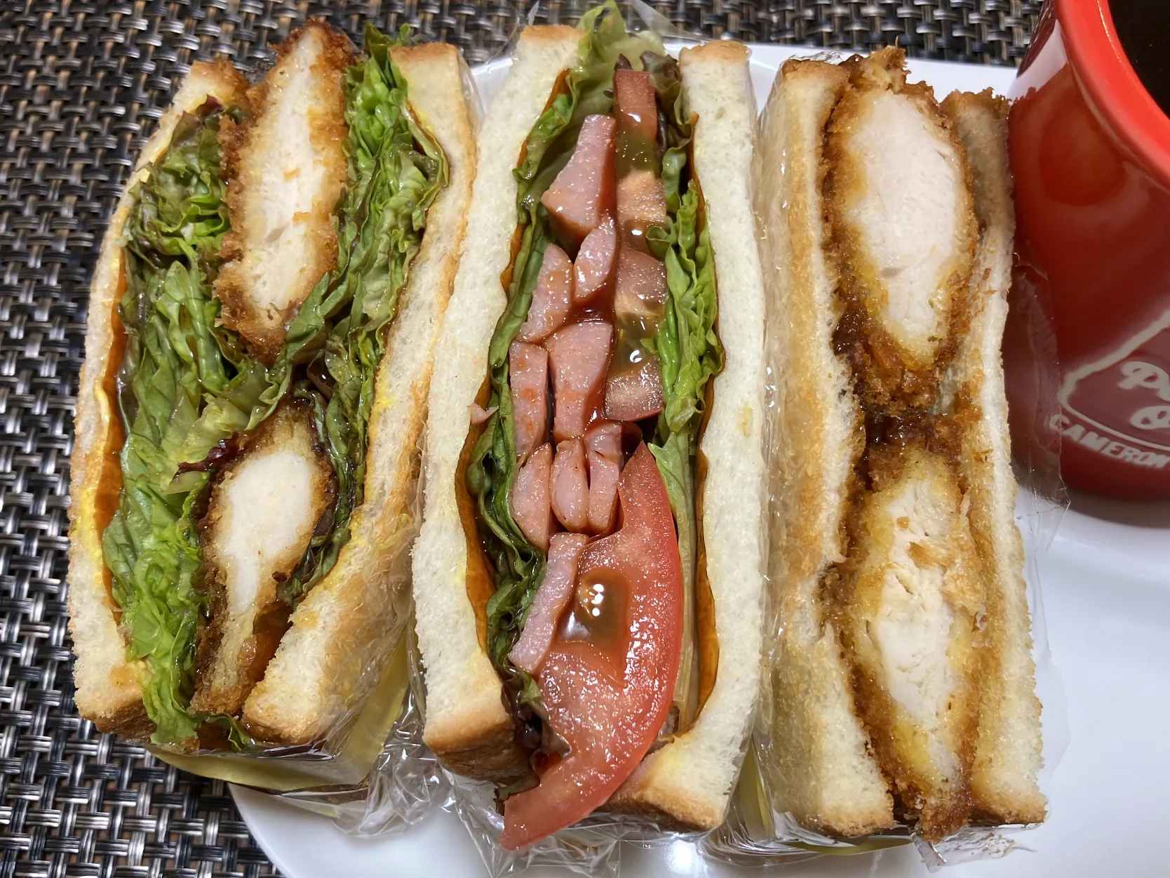 本日のサンドウィッチ(レタスたっぷりチキンカツサンド&SLT(ソーセージ・レタス・トマト)サンド&シンプルチキンカツサンド)