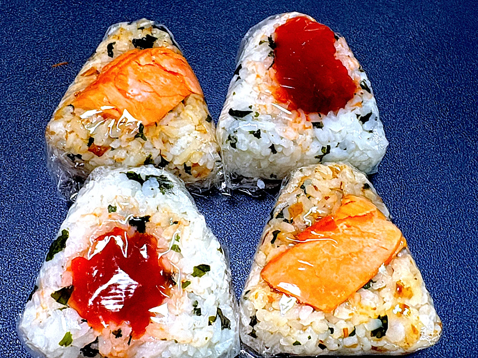 さっちゃんおにぎり🍙             😊カツオにしゃけ                😊わかめにすじこ