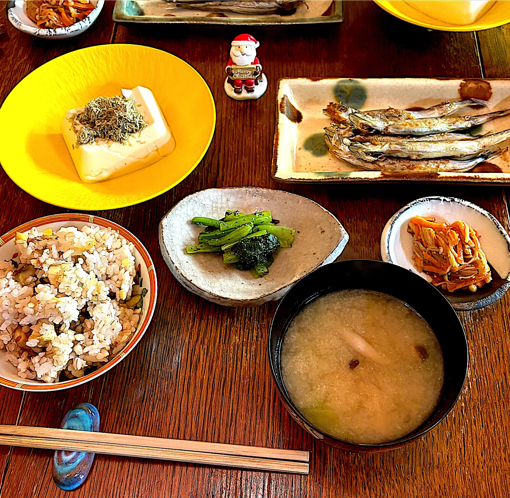 晩ごはん♯ししゃも♯栗ごはん♯冷奴