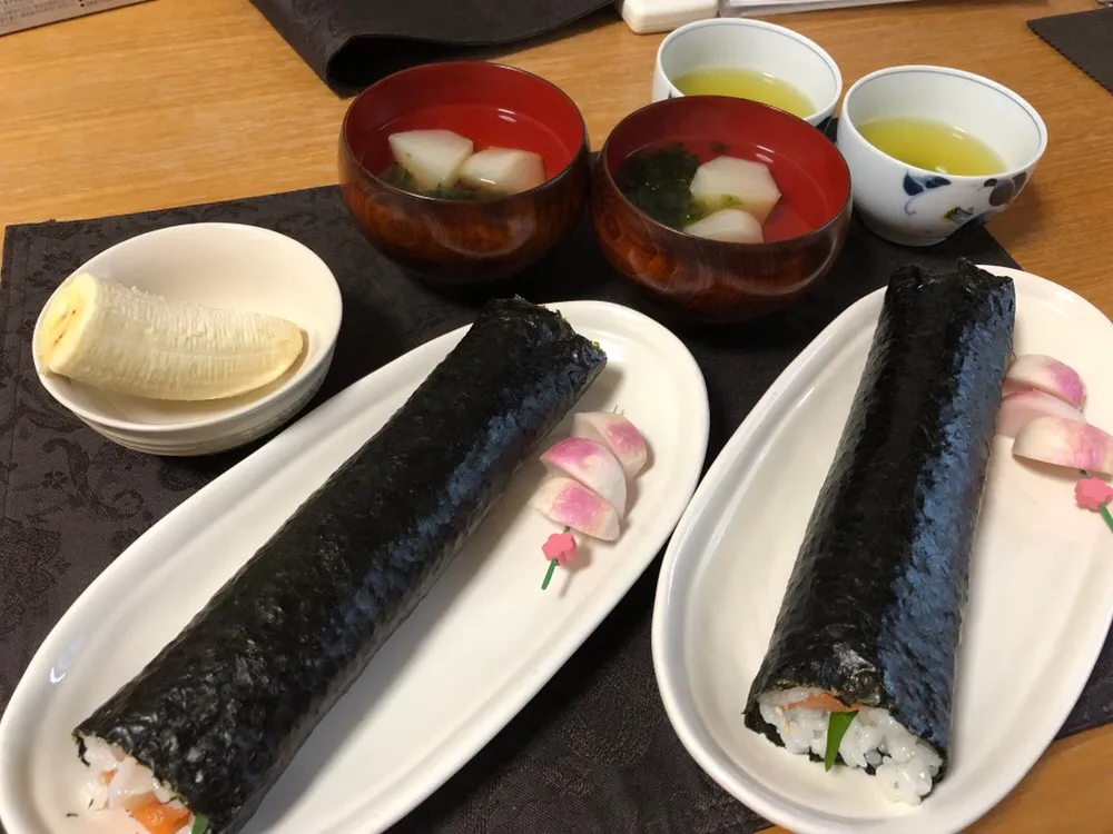バタバタとなんとか今年も恵方巻き作れました😅ムスメはバナナ🍌で恵方巻き(笑)来年は小さな恵方巻き食べるんかな〜?