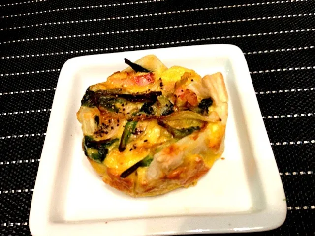 ライスペーパーを使ったほうれん草とベーコンのキッシュ