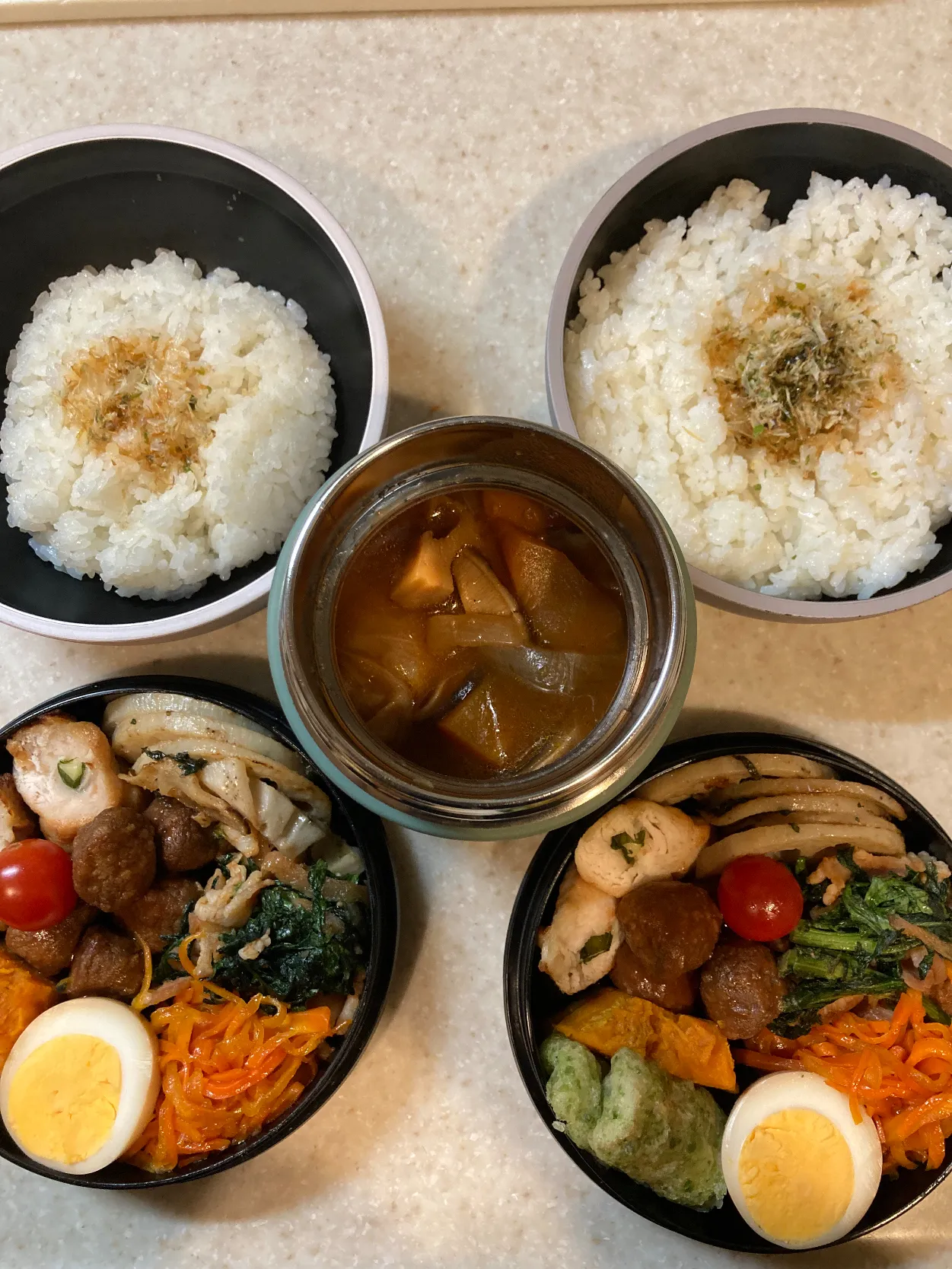 牛肉と春菊をハチミツとコチュジャンで炒めてみた。スープジャーはロールキャベツでデミ味。 #BENTO #お弁当 #bento