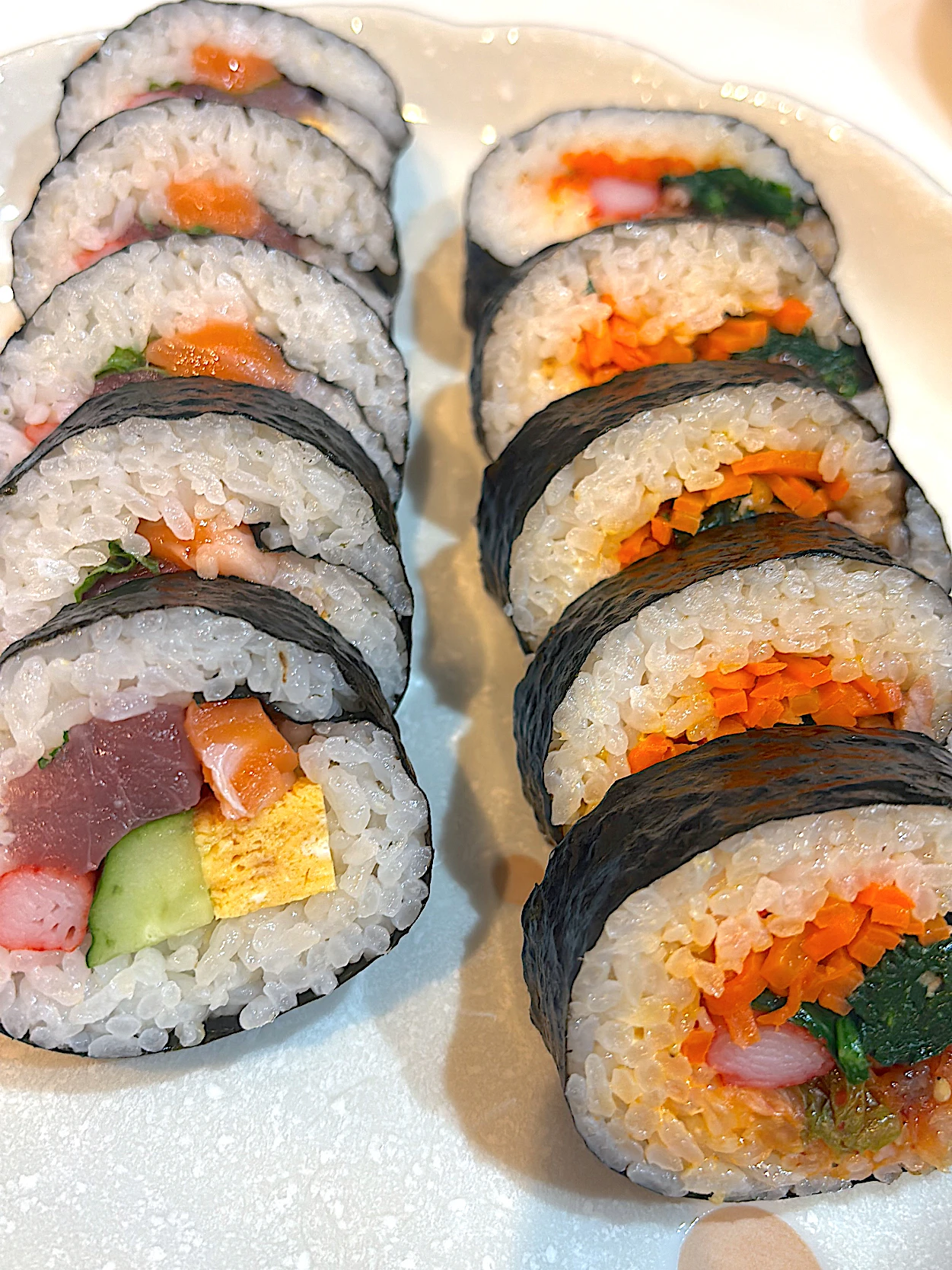 インフルエンザの娘ちゃんに海鮮巻きとキンパを作ったよ!食欲めっちゃあって元気だからぺろりかな?