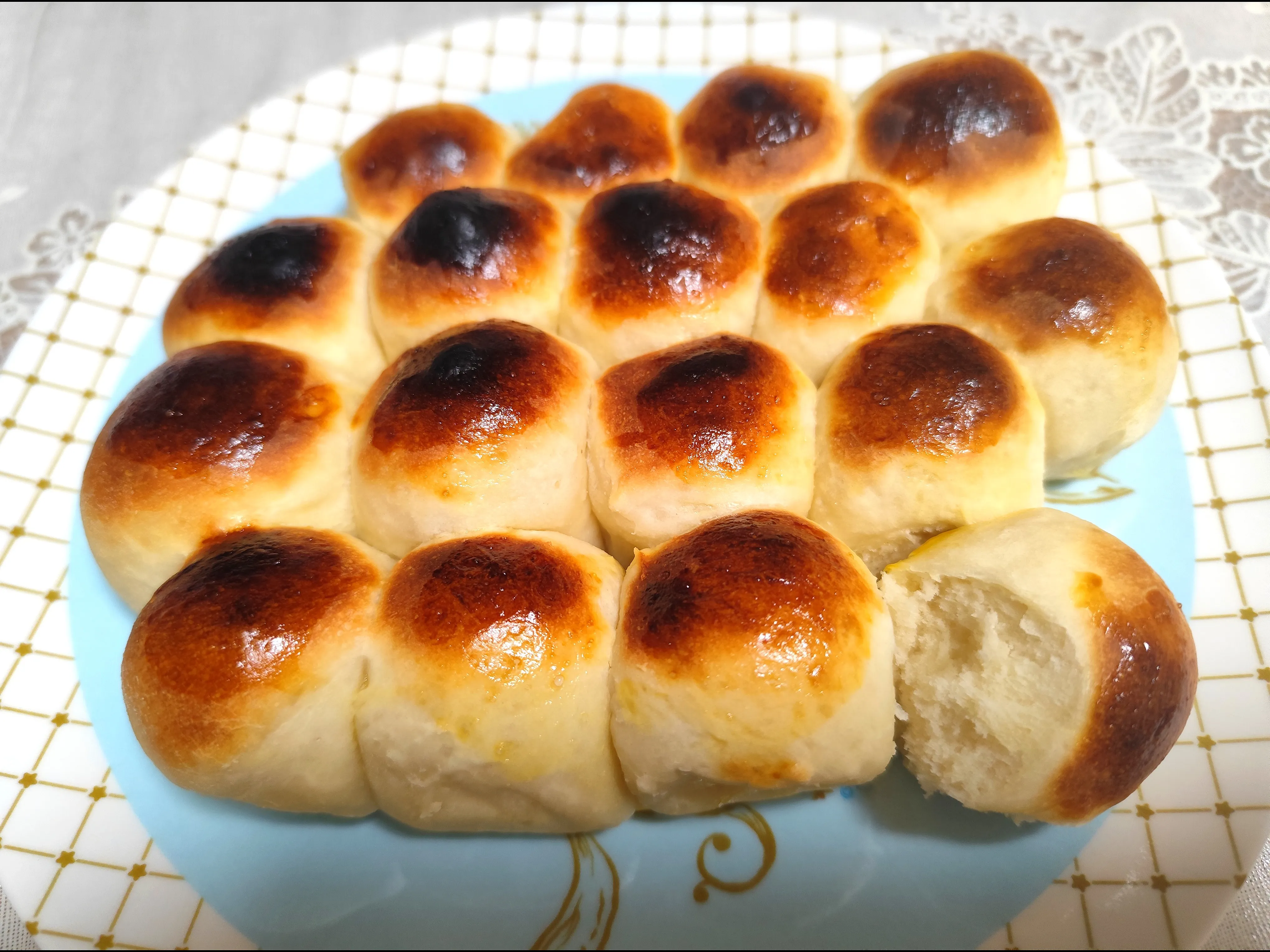 途中からホイルして焼きましたが、やはり膨らみは悪かったです、甘みが少なく蜂蜜かけて頂きました🤗🧡中ふわふわ外カリッと💕