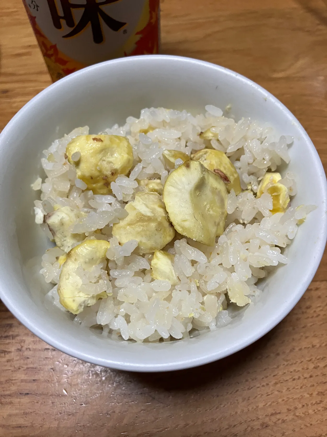 うるち米ともち米同量で炊いた栗ごはん。もちもち美味しい。 #簡単料理