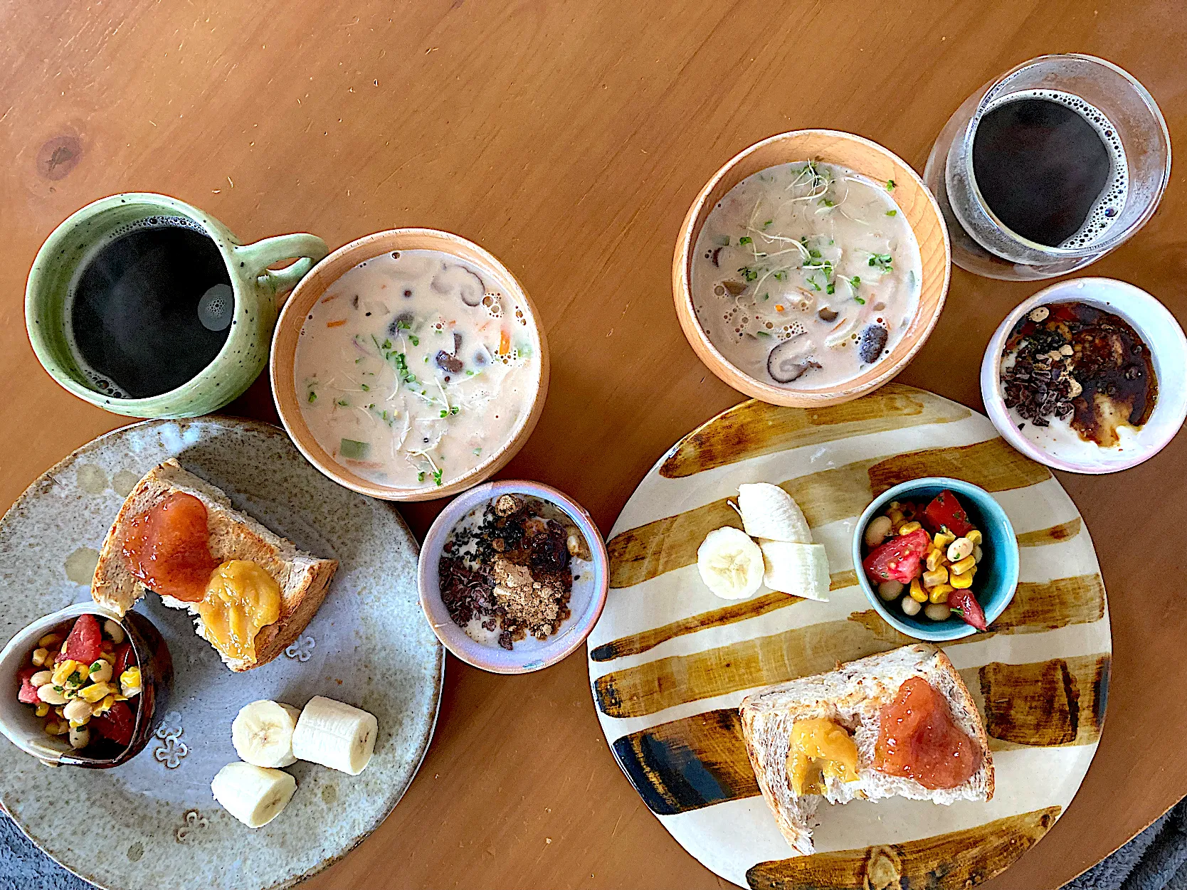豆乳グルト(カカオニブ、乳酸雑穀きな粉、エルダーフラワーコーディアル、黒糖、メープルシロップ、エゴマオイル)