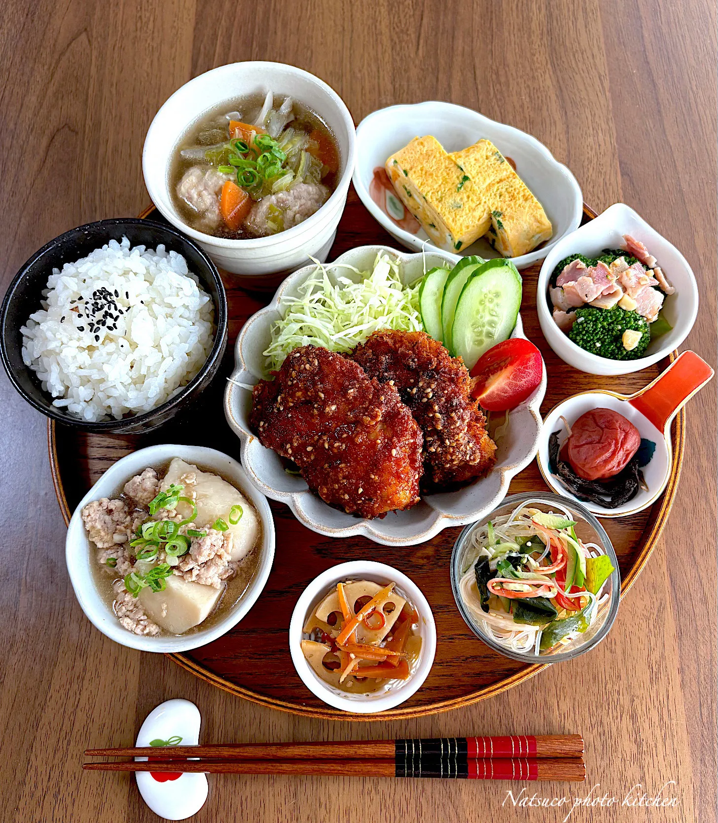 青海苔とり天と素麺衣のとりカツ定食です✨