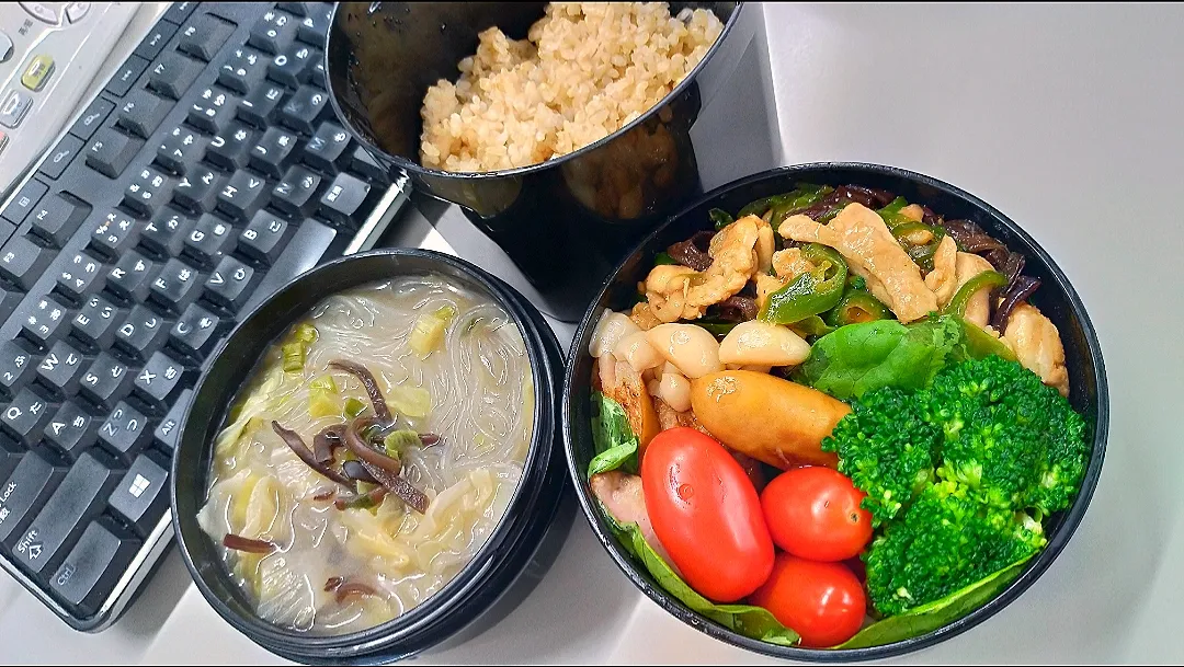 青椒肉絲風鶏肉炒め&増々春雨白湯スープ