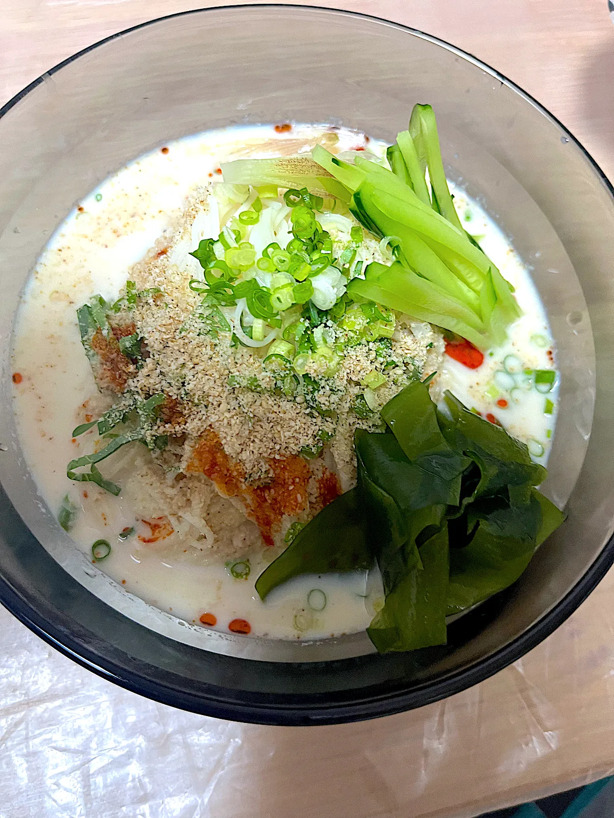 #牛乳 #昆布つゆ #アルモンデ #ワカメ #胡瓜 #ネギ