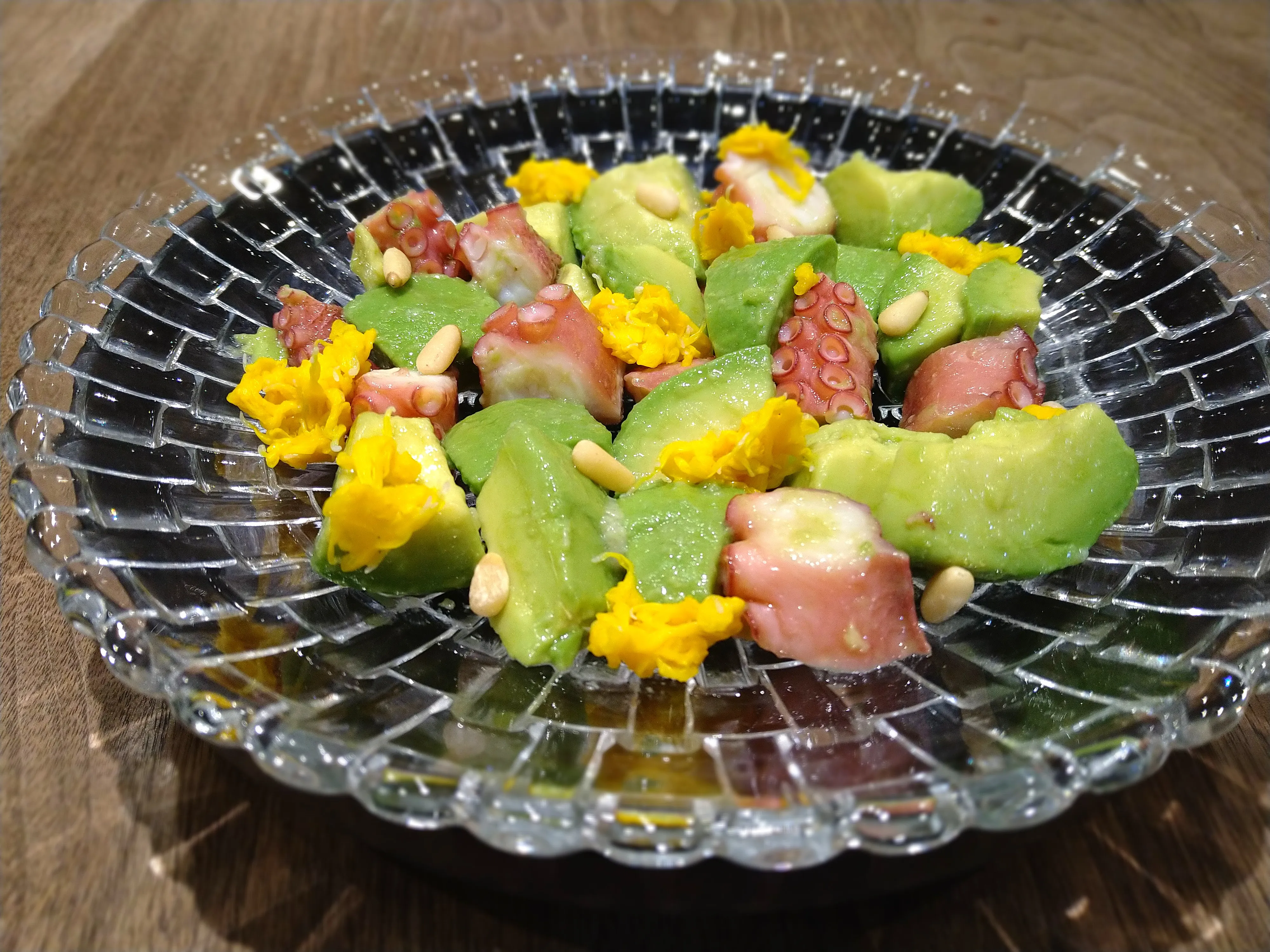 #簡単料理 #サラダ #アボカド#たこ#松の実#食用菊#エディブルフラワー