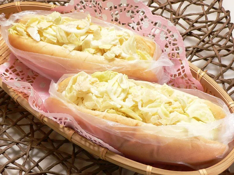 【お菓子で料理】市販のポテトチップスと刻みキャベツをマヨネーズで和えて、パンに挟むだけ!とても簡単に軽食が作れるポテチアレンジレシピ。ポテチの種類を替えたり、ハムをプラスして豪華にしたりと色々と楽しめる簡単レシピです。ぜひお試しください。