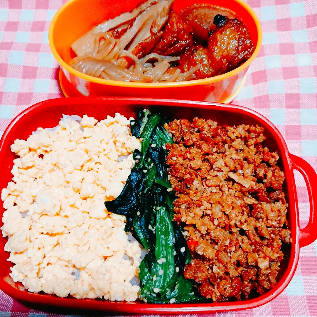偏食大臣のお弁当が不要の時に、娘に食べたいお弁当はないかと聞いたら、三色そぼろ弁当が食べたいと。