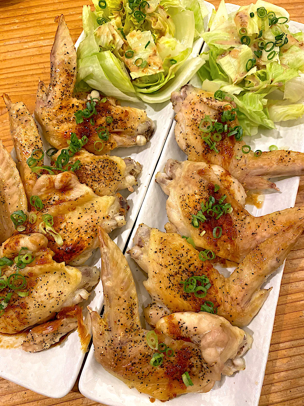 にんにく🧄と料理酒に漬けていた手羽元を炭火で焼く