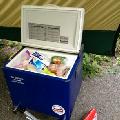 Snapdishの料理写真:手作りパンチェッタとサラミ。培養したチーズの白カビを植え付けたもの。ポータブル冷蔵庫内で熟成中。