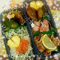 Snapdishの料理写真:ひじき炒飯弁当*さきイカ天ぷら、竹輪のマヨ七味、野菜の田楽…が入ってます☀︎