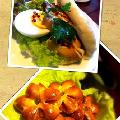 ココナッツオイルで卵を焼き チキンのトマト煮をソース代わりにしました