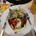 Snapdishの料理写真:晩御飯☆サラダ(カニカマ・貝割れ大根・ゆで卵)☆イカ焼き&キャベツ焼き(お義母さんからの頂き物)☆サイコロステーキの炒め物(茄子・キャベツ・しめじ)☆野菜のかき卵スープ(キャベツ・えのき・揚げ)スープはパパ仕上げ🤭