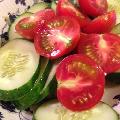 貸し農園で採れたミニトマトの甘酢漬けとグリーンサラダ