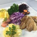 ローストポーク ひじきと大豆のナゲット モロヘイヤの梅和え 厚揚げと茄子の肉巻き...